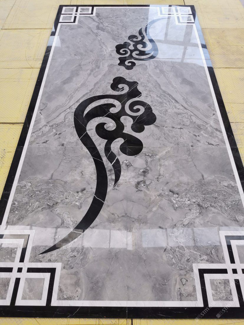 轻奢灰色水刀地面拼花
