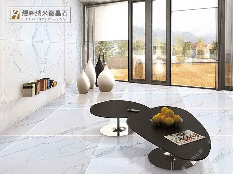鱼肚白台面板客厅地砖卧室釉面砖耐磨砖雪花白微晶石板