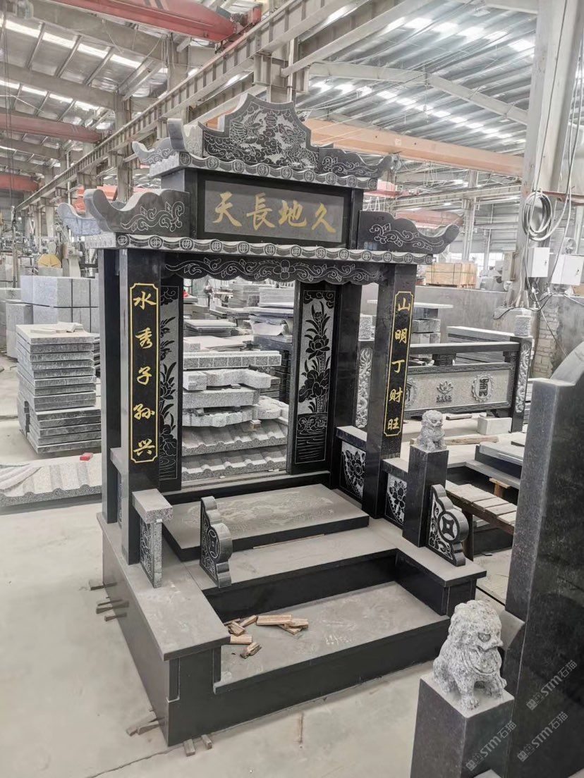 G654芝麻黑柬埔寨黑黑色墓碑石套墓花岗岩石材厂家