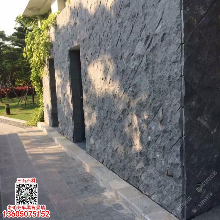 长泰芝麻黑背景墙老矿G654花岗岩自然面外墙砖干挂