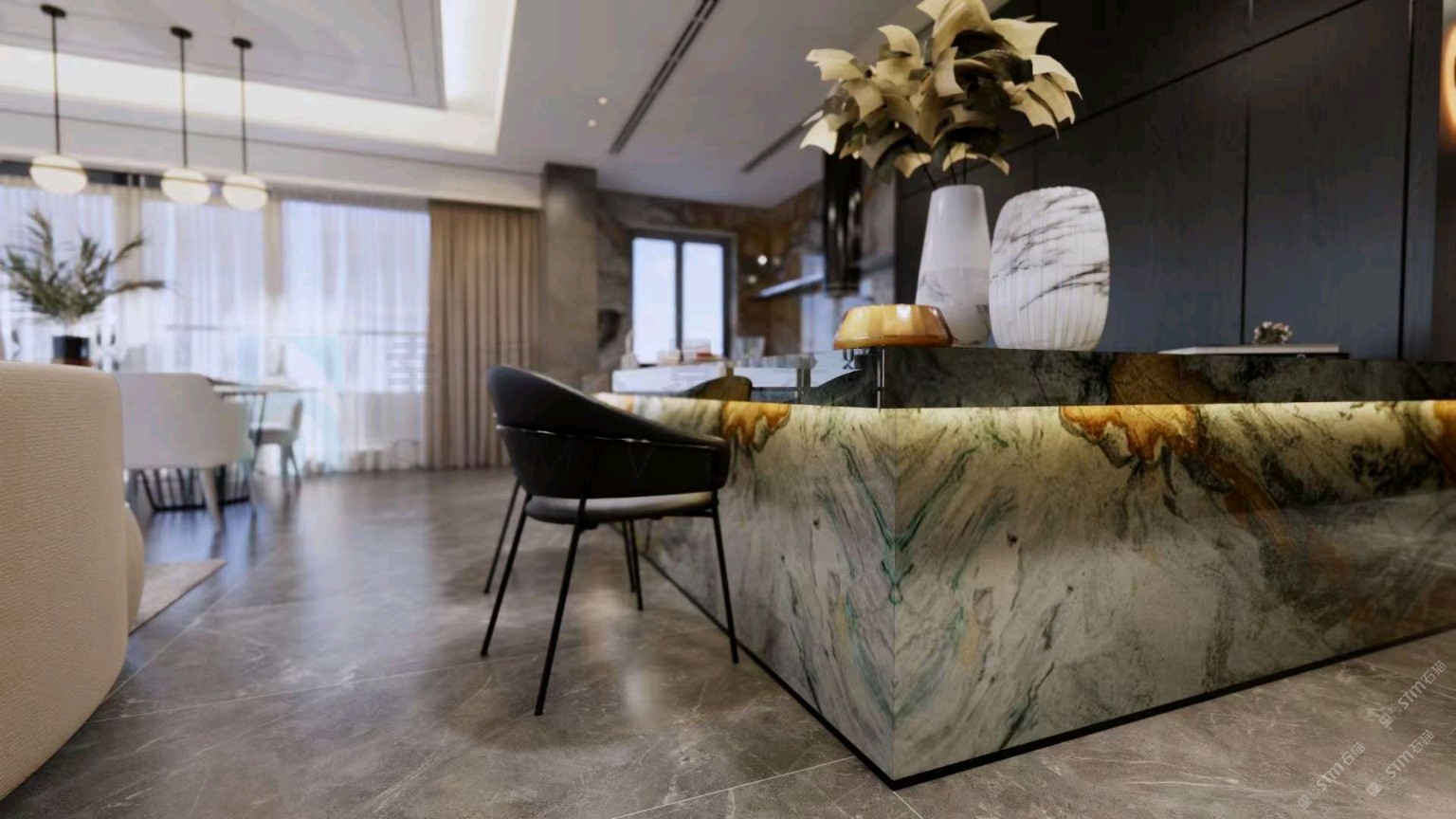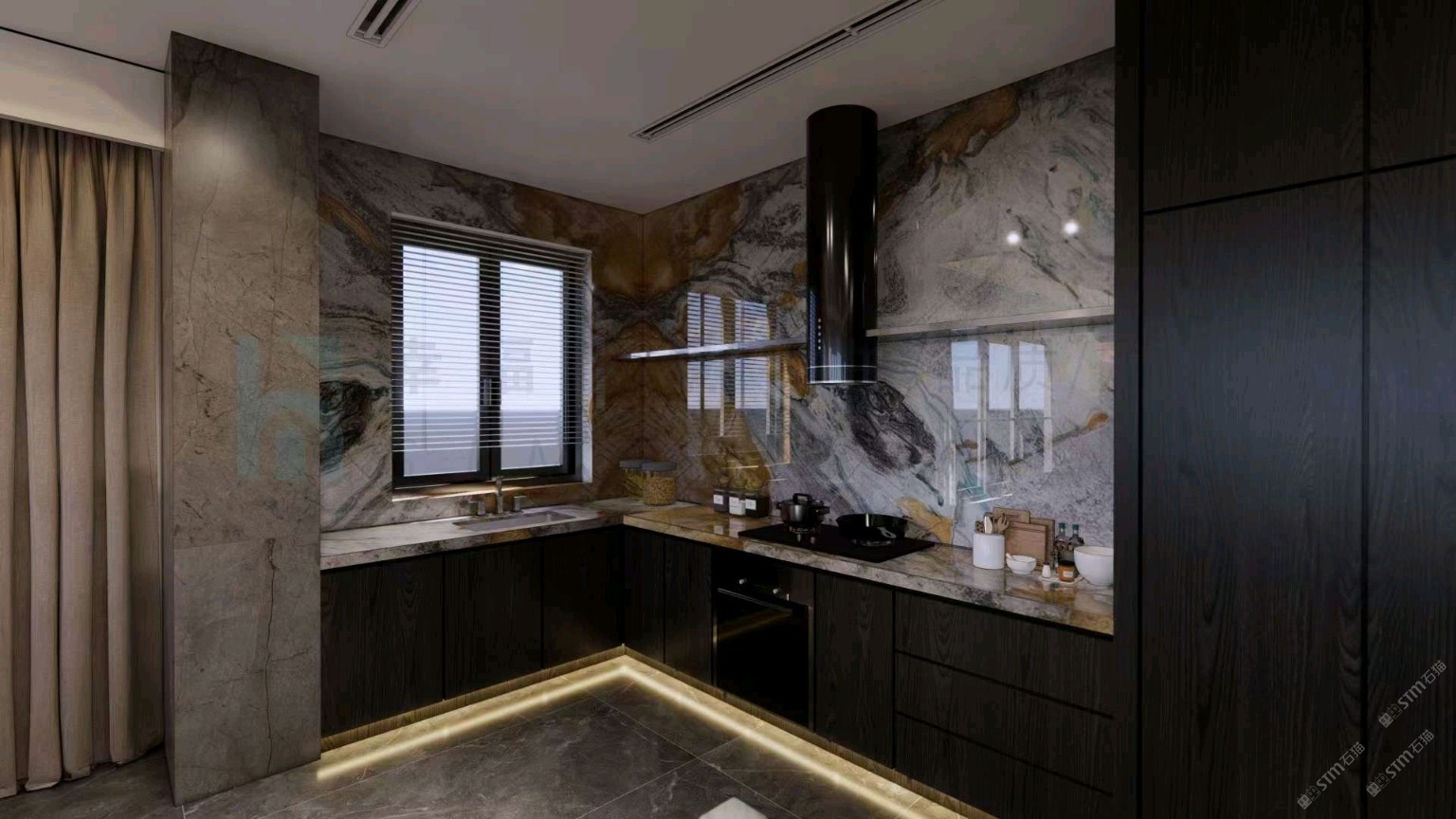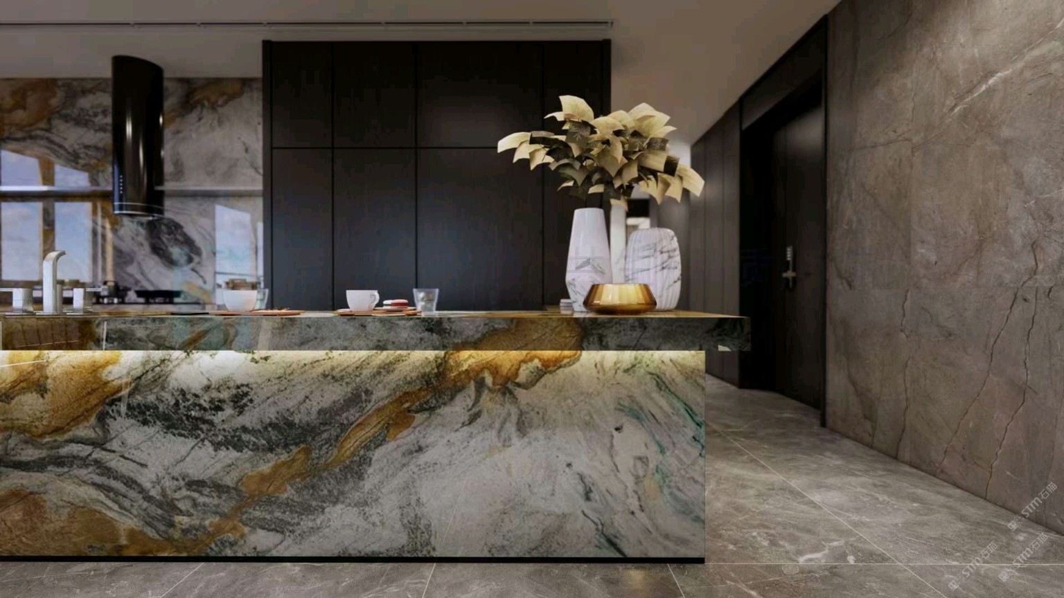 发布信息: 灰色的沉稳与黄色的温暖搭配胡桃木的设计,很好地唤醒了厨房的活力。 一日三餐烟火人间,以一个开放式厨房去承载 。 奢石|敦煌壁画