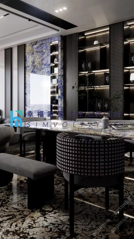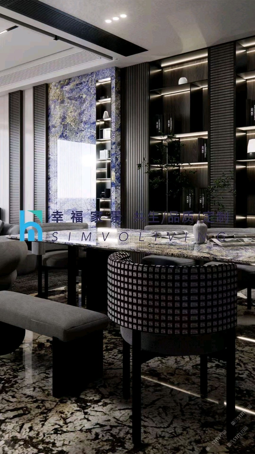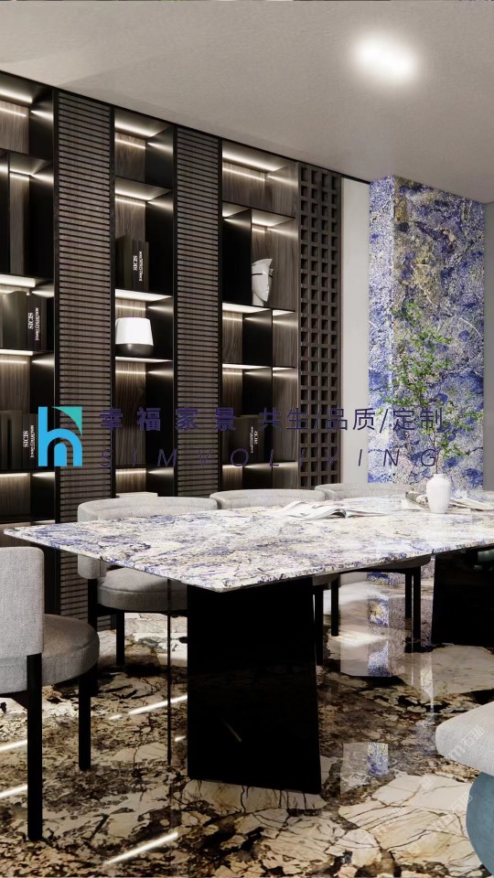 发布信息: 奢石|梦幻蓝宝|老矿潘多拉 将实用主义与设计美学一起融入到家居设计中。 用天然奢石「梦幻蓝宝」做台面与背景,搭配「老矿潘多拉」做成的地面,以这样具有独特设计感的风格来对抗生活的粗糙。 这是我们对追求精致美好生活的态度。