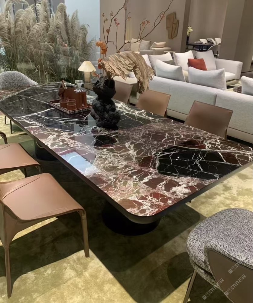 发布信息: 在极简黑白灰棕的空间色彩里 再搭配沉稳优雅的紫罗红 这款红白相间的大理石 来自大自然的色彩与质感碰撞 为家居空间提升不少视觉层次与品味 沉稳内敛 有不失调性 打破空间的单调与沉闷 眼前一亮 一种不可或缺的艺术享受