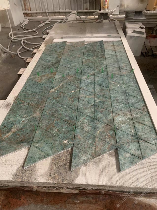 进口绿松石材料,墙面拉槽加工