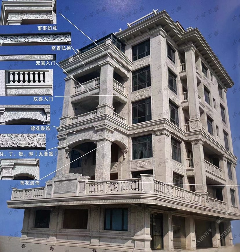 雕刻石雕别墅石材装饰栏杆线沿入户门窗户露台观景亭