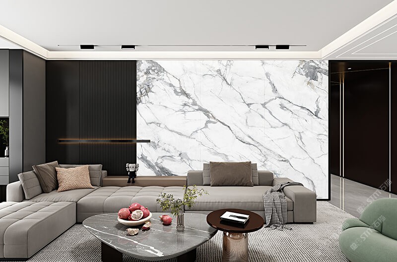 唐驰定制大花白岩板背景墙
