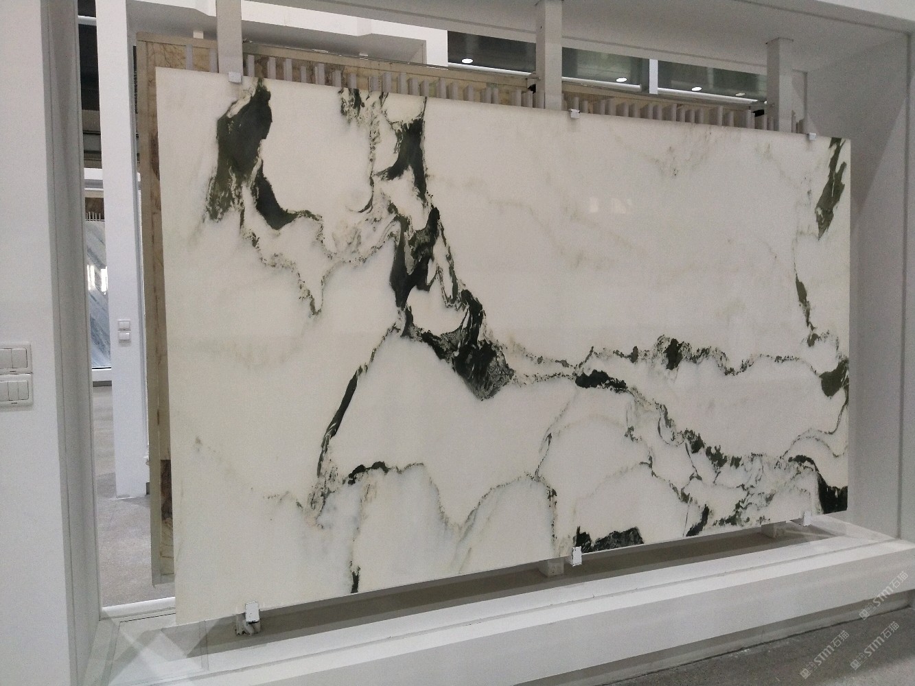 新正大奢石馆[奢石品牌]山水画背景墙。