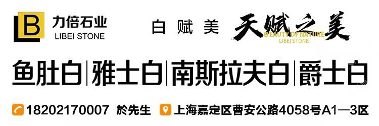发布信息: 力倍石业主营石材: 雅士白 爵士白 鱼肚白 南斯拉夫白专场 等多种白色高端石材 设计师白色石材 高端大气上档次 低调奢华有内涵 需要的朋友联系下方财富热线 财富热线18202170007(於总) 13817099291(李总) 地址:福建水头~上?!贤?~宜兴分公司 均可提货