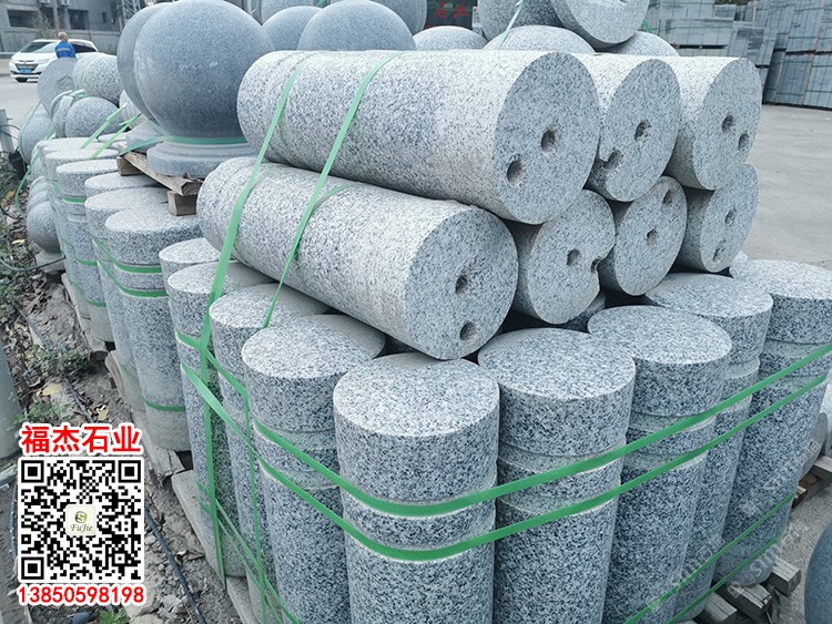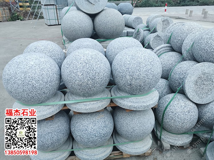 G655芝麻灰花岗岩路障石灰色石材挡车石球圆球石墩