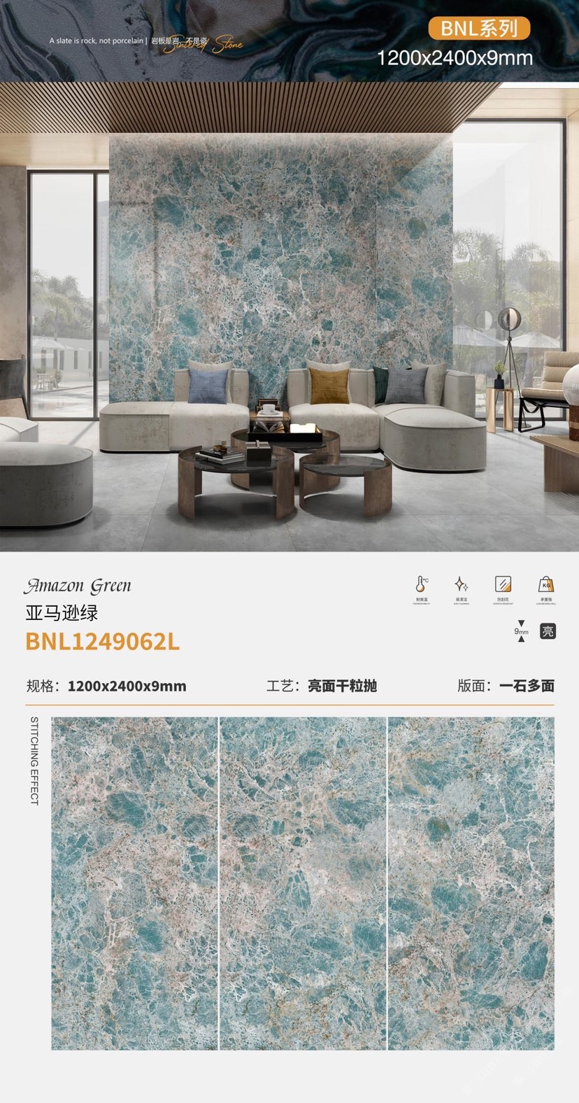 千里山水岩板-亚马逊绿岩板-蓝金沙岩板-贝奈利