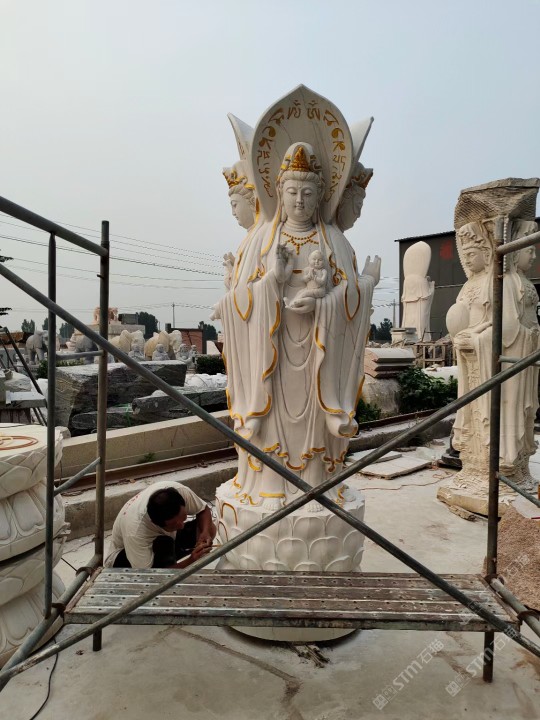 汉白玉佛像 青石圆桌