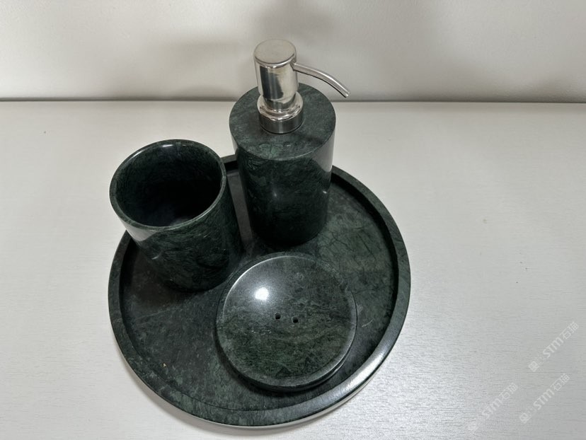 大花绿石材卫浴四件套 石材香皂盒淋浴摆件托盘