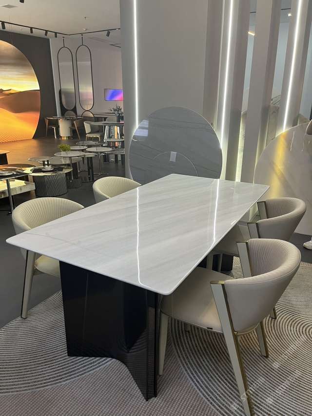实木结合五金奢石餐桌#水头奢石家居中心