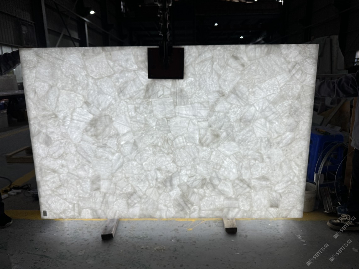 发光白水晶大板定制,透光半宝石板材,透光奢石定制