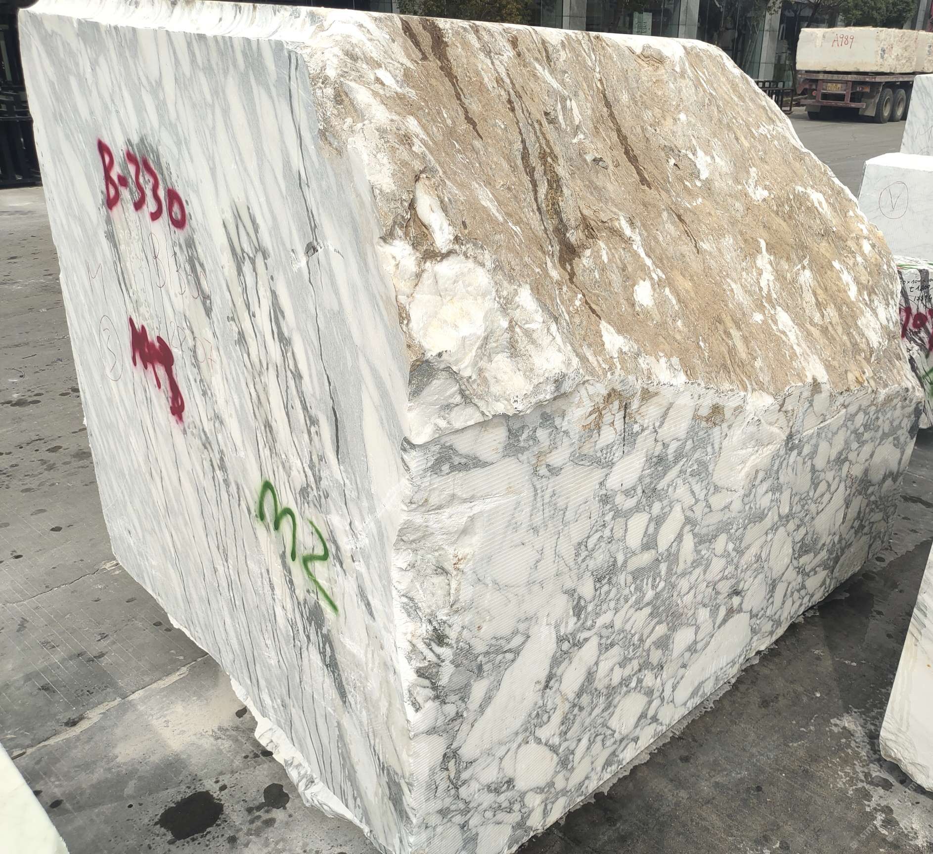 意大利大花白荒料已到