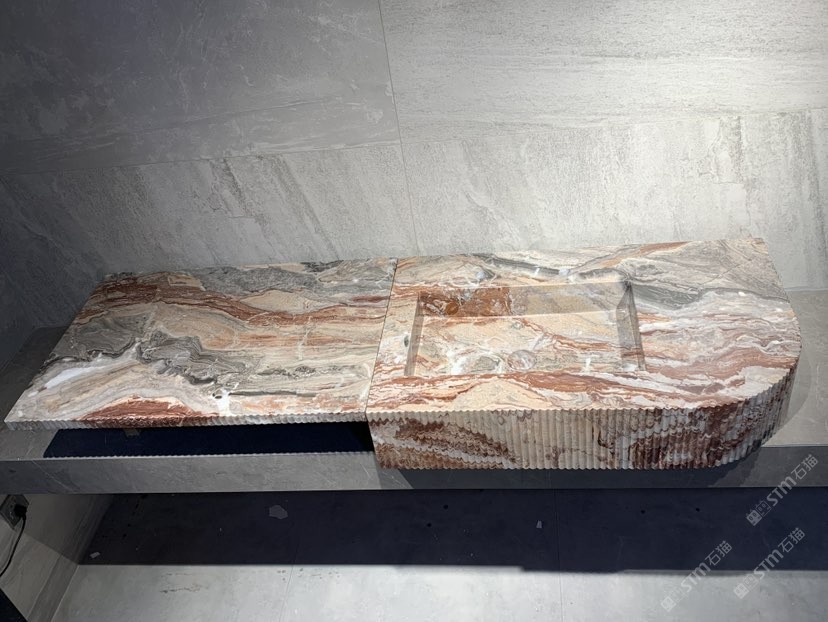 芬迪红一体盆 石材洗手盆柱盆石材卫浴家居