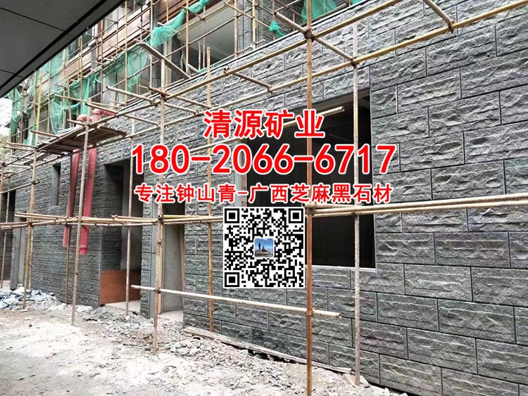 广西钟山青石材自然面背景墙金点绿劈裂石广西芝麻黑石