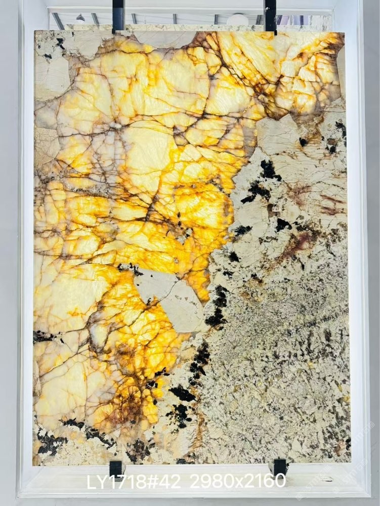 发布信息: 15259765016 ? 天然流淌的金丝纹路像把星河揉进了石头里 ?? 暖金色泽自带贵气滤镜 随手一拍都是高定质感 无论是家装背景墙还是餐桌台面 往那一站 直接封神??! “奢”得毫不费力 感直接拉满??