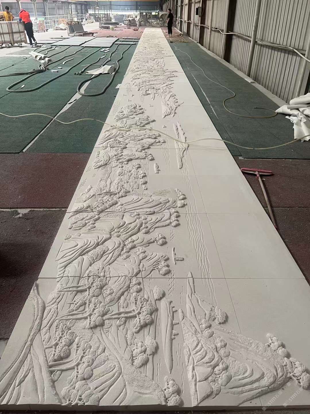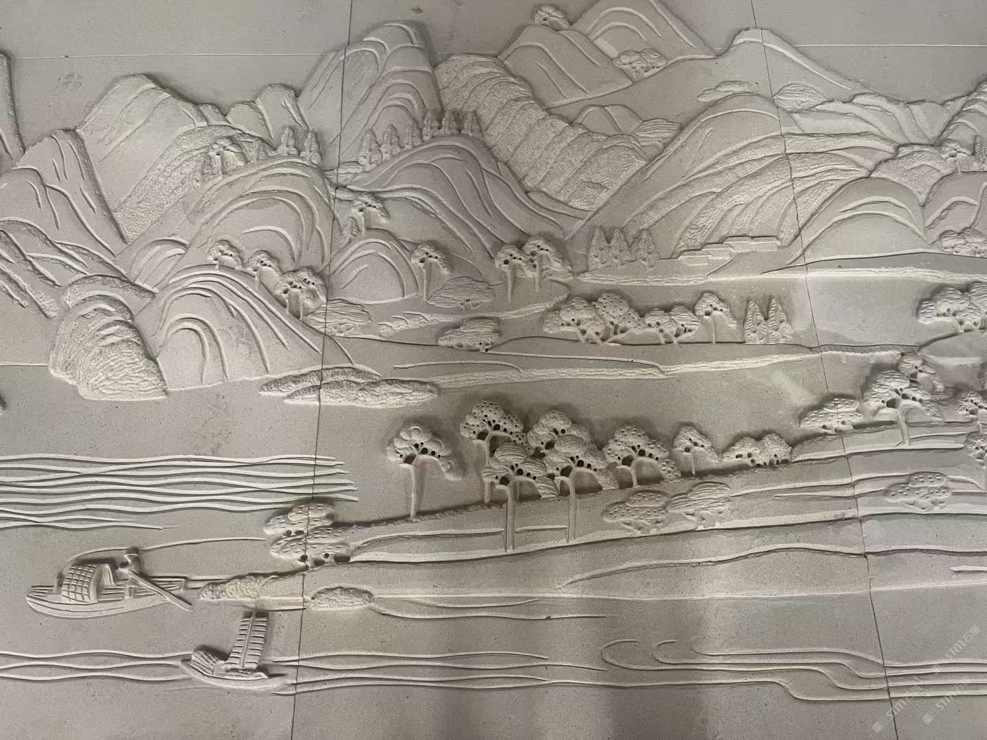 #莱姆石异形加工千里江山雕刻