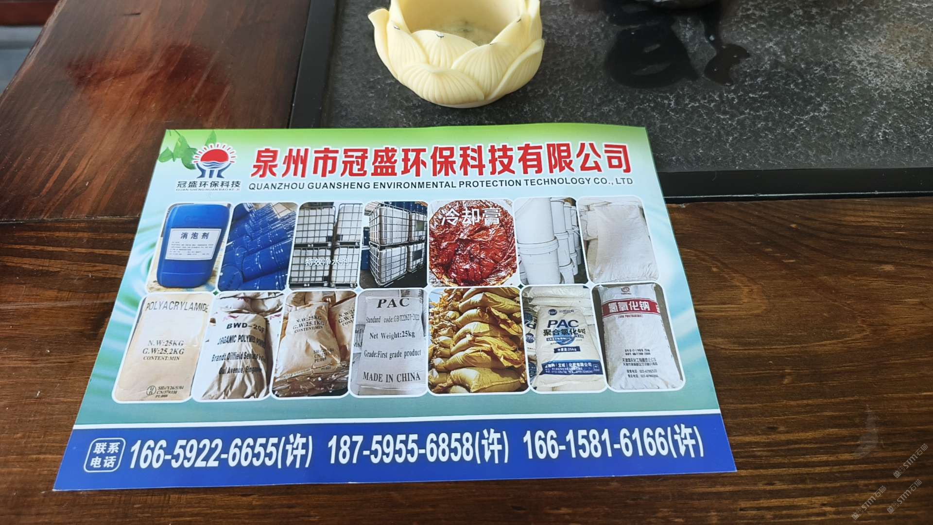 冠盛水处理材料批发部【环境污染处理材料】 联系人:许天灌    153****6521 查看 166****6655 查看 主营范围: 其他、石材辅料及特殊工艺、更多、环境石材、 企业地址:福建南安石井镇院下村新街308-11号(冠盛环??萍迹?/span>
