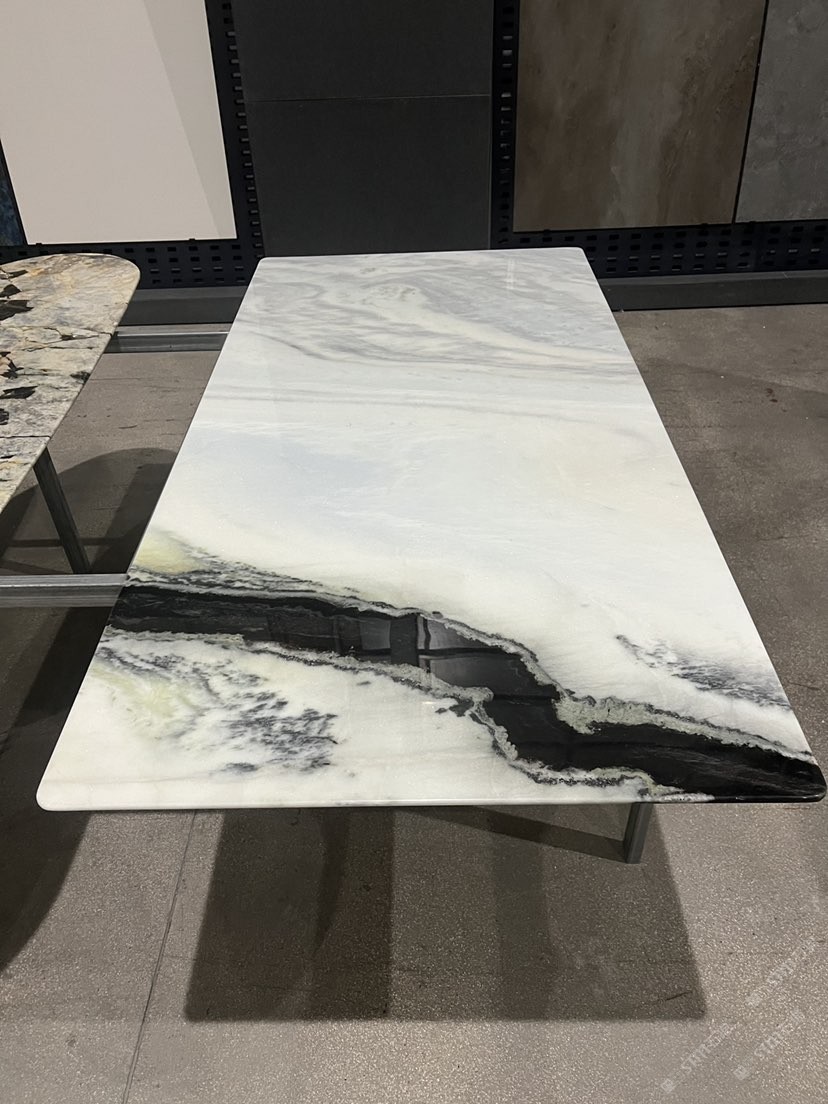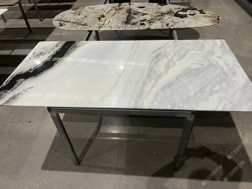 熊猫白奢石餐桌 天然水墨