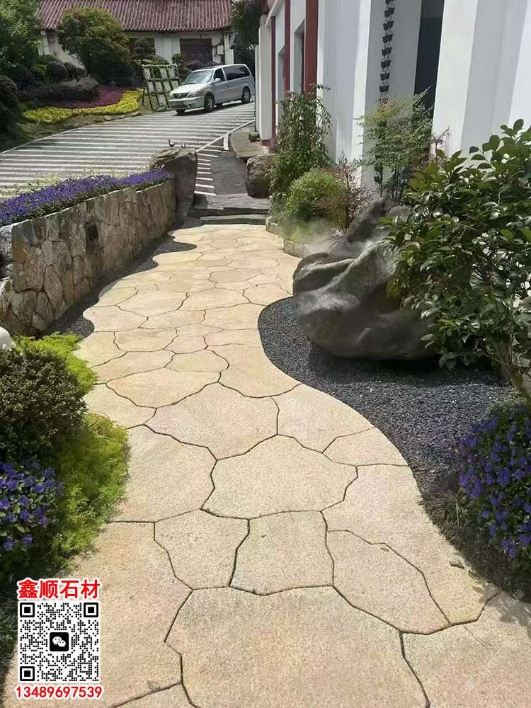 黄锈石地图拼石材庭院园林景观异形地铺乱拼碎拼冰裂纹