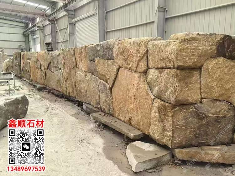 黄锈石垒墙石自然面墙砖天然石皮背景墙护坡石黄色毛石