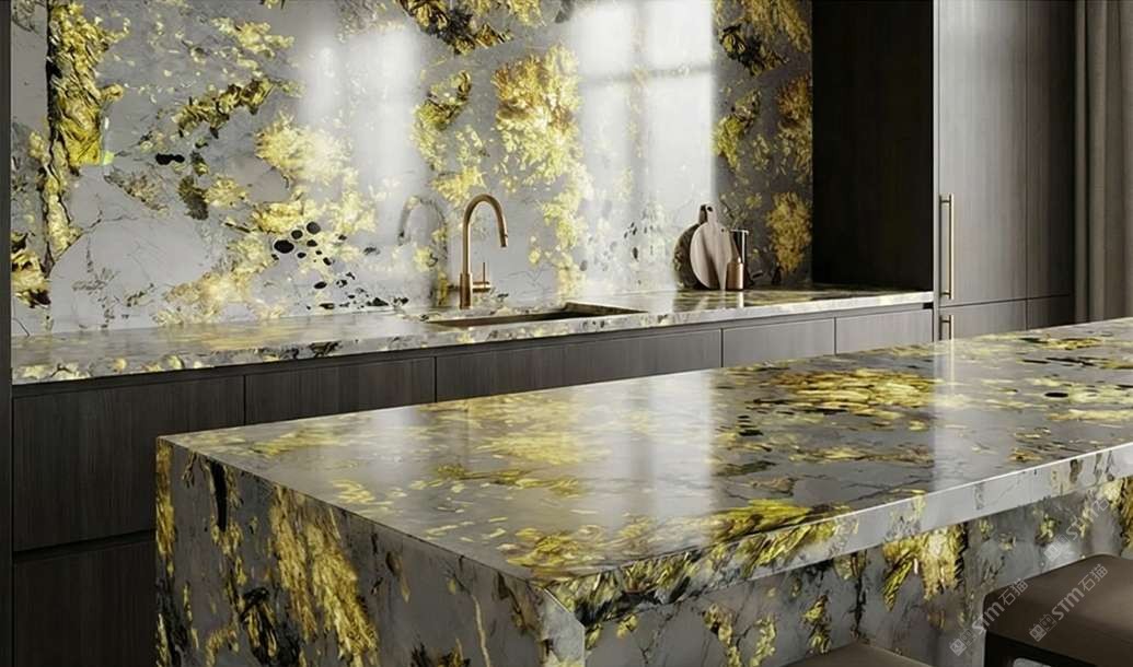 品一奢石馆|孔雀开屏 格兰云天 芬迪白 镜湖春晓
