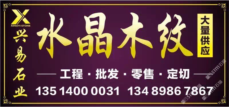 发布信息: 【兴易石业】—水晶木纹专场 年末钜惠,互惠互利 全场大板特价出售 58元起?。? 我司专营水晶木纹系列产品:水晶木纹,啡金沙、翡翠木纹。新.白金沙.蓝金沙 工程订单-零售家装-单件-单片均可销售 电话:13514000031 13489867867 销售点: 高时物流靠近一号馆大门右手路