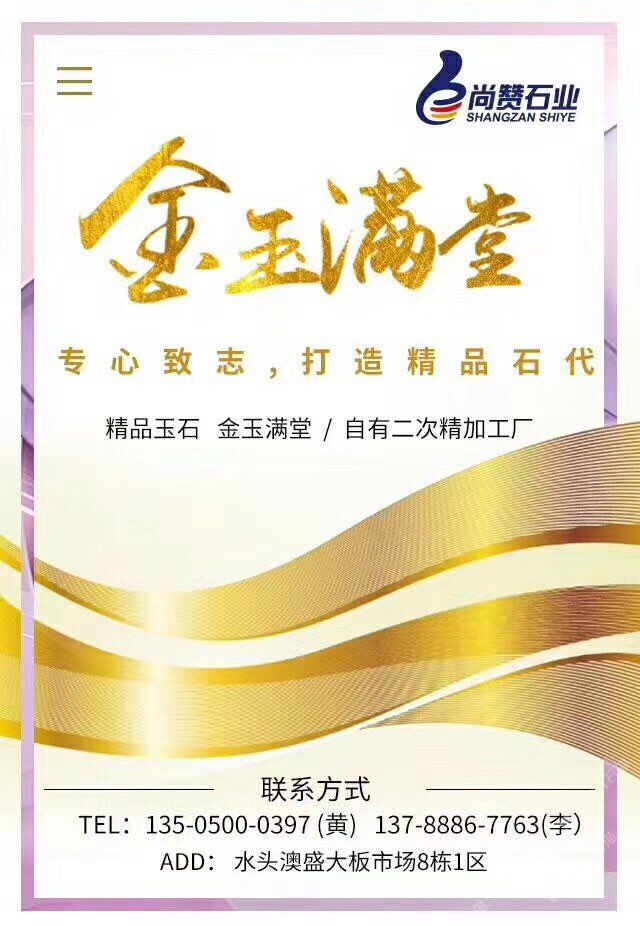 发布信息: 会透光的玉石。对磨。1、8足厚 地址:奥盛市场8栋1区<尚赞石业> 13505961703黄慧玲