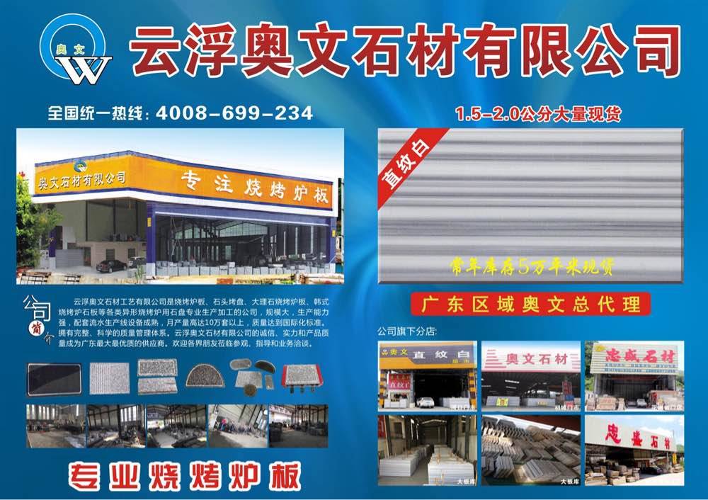 云浮奥文石材有限公司 联系人:叶先生    139****1048 查看 4008699234 查看 主营范围: 大板批发、 企业地址:广东云浮广东省云浮市云城区河口夹河路口