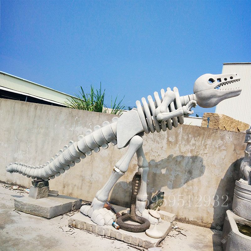 石雕石头恐龙化骨 石雕恐龙骨头骨架艺术雕刻摆设