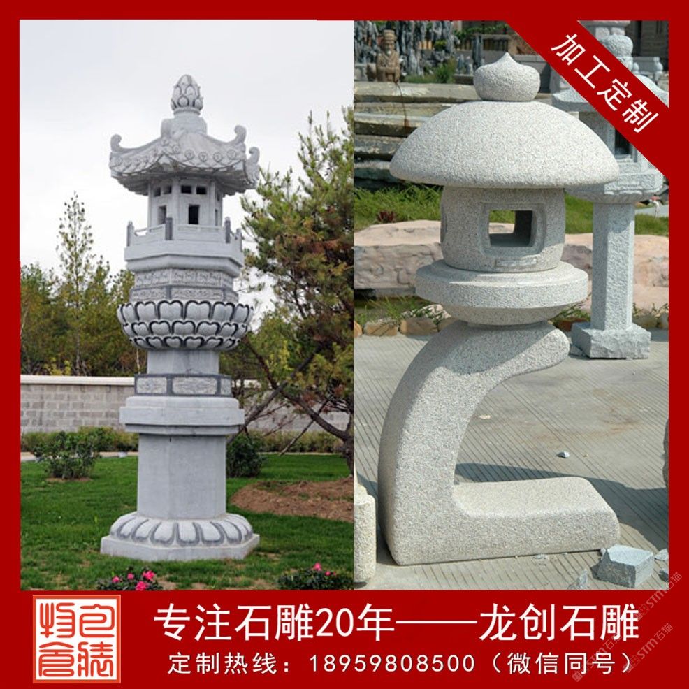 发布信息: 温馨提示 产品图片和价格仅供参考(规格、材质不同价格不同) 更多详情欢迎来电或微信咨询! 石灯笼早雏形是中国供佛时点的灯,也就是供灯的形式。这种形式经朝鲜传入日本,其例子如平等院凤凰堂佛前的供灯。它表明“立式光明”的意思。在中国的山西省太原的龙子寺址中的摩崖佛前有唐以前的高大灯笼,它是中国古老的例子。