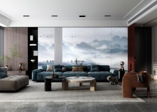 唐驰岩板定制 新中式背景墙装修