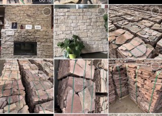 红色碎拼石垒墙石