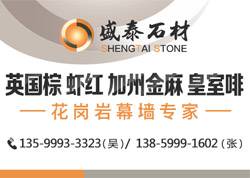 福建省南安市盛泰石业有限公司主营产品:英国棕,铁灰,皇室啡,白玫瑰(花岗岩),虾红,虾红G681(荔枝面红底),虾红G681,白世贸,白玫瑰,加州金麻,巴西金,安哥拉黑,安哥拉棕,黑金沙,黑金沙(中花),黑钻(墨玉金刚),大啡珠,细啡珠,细啡珠1,巴西细啡珠,浅紫点金麻,浅紫点,芭蕉黄,蓝珍珠,蓝珍珠(11号矿),银珠,加州金麻1,加州金麻(黑底),印度兰,印度兰1,加多利,红钻麻,红钻,啡钻,墨绿麻,绿星,印度蓝,金钻麻1(荔枝面),金钻麻,美国白麻,美国灰麻,金山麻,金山麻1,沙利士红,沙利士红1,新金彩麻,金彩麻,梵斯高金,特巴斯金,蓝宝石,云黑石,云黑石(巴西),幻影兰,紫点金麻,中紫点,紫水晶,高蛟红,幻影蓝,加州棕,骆驼棕,皇家蓝,海洋蓝,七彩啡,高娇红,弧形板(大理石空心圆柱),弧形板(花岗岩空心圆柱),实心圆柱(大理石),罗马柱(花岗岩)企业地址:福建泉州南安市水头镇福山工业区2期
