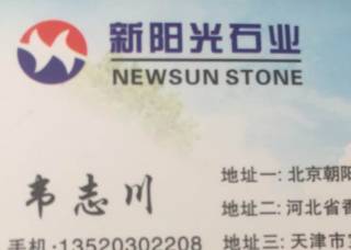 新阳光石业主营产品:绿星,宝利康,英国棕,巴西金,红钻,皇室啡,印度红棕,铁灰,红珍珠,南非红,冰花兰1,安哥拉棕,中紫点金麻,银珠,黑珍珠,龙红(印度),啡钻,特巴斯金,芭蕉黄,北极光4企业地址:福建南安水头镇肖厝村