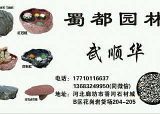 蜀都主营产品:中国红,台湾红,豹皮花,承德绿1,中国红(人造石),台湾红1,豹皮花1,豹皮花(红底),新疆豹皮花,承德绿,承德绿2,承德绿3,承德绿4,染红板(染板)企业地址:河北廊坊香河市安平镇香河石材城B区花岗岩货场L04-05~顺着一排绿树走到头就是