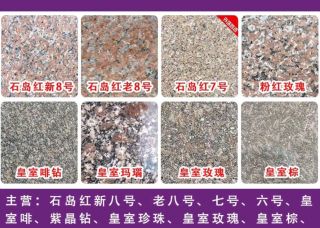 立泉主营产品:石岛红,石岛红(7号),石岛红8号,石岛红(老8号),石岛红(新8号),新石岛红,新石岛红(荔枝面),新石岛红(光面),皇室冰花,皇室啡1,皇室啡(新矿),皇室啡珠,皇室啡钻,皇室啡珠2,皇室啡珠1,皇室灰企业地址:山东威海荣成市