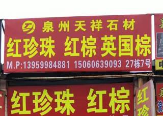 新阳光石业主营产品:绿星,宝利康,英国棕,巴西金,红钻,皇室啡,印度红棕,铁灰,红珍珠,南非红,冰花兰1,安哥拉棕,中紫点金麻,银珠,黑珍珠,龙红(印度),啡钻,特巴斯金,芭蕉黄,北极光4企业地址:福建南安水头镇肖厝村