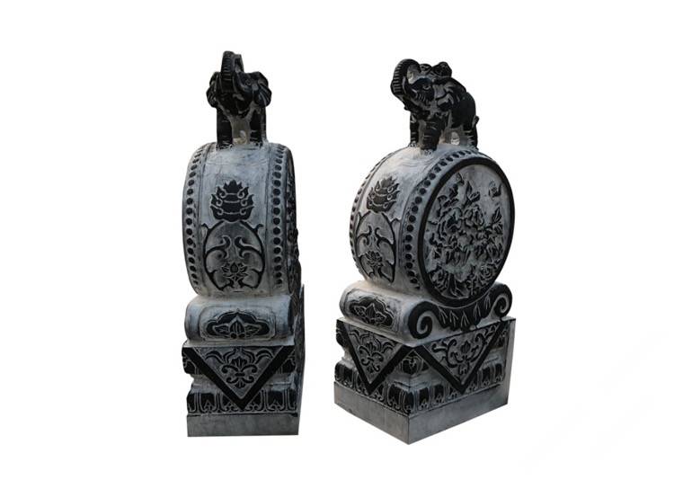 描述:抱鼓石是汉族传统民居,特别是四合院的大门底部位于宅门入口、形似圆鼓的两块人工雕琢的石制构件,属于门枕石的一种,因为它有一个犹如抱鼓的形态承托于石座之上,故此得名。抱鼓石是礼制建筑等级的符号象征,也是"非贵即富"的门第符号,抱鼓石绝不脱离它主人背后的政治、经济基础而独立存在。抱鼓石汉族民间称谓较多,如:石鼓、门鼓、圆鼓子、石镙鼓、石镜等等。抱鼓石与门簪因为在宅门门面上下遥相呼应,在汉族民间有所谓的"门当户对"之说。